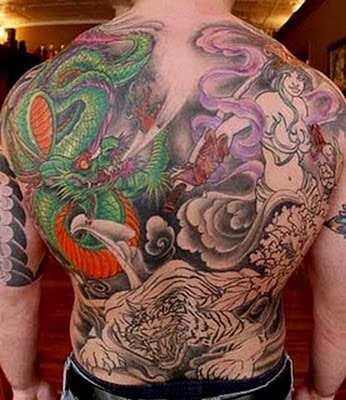 Tiger and dragon fighting Japanese tattoo